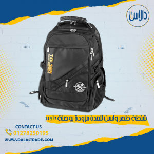 شنطة ظهر ولسن للعدة مزودة بوصلة usb لشحن الموبايل